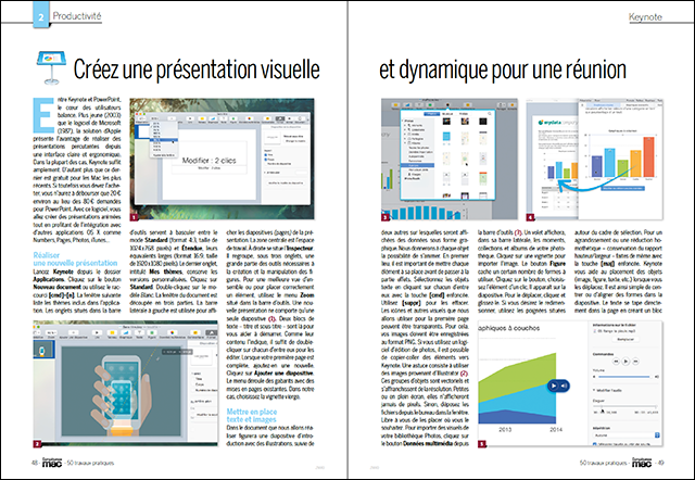 Habituellement, Compétence Mac vous propose de suivre des tutoriels d’une ou de deux pages sur un sujet donné. Dans ce numéro, nous avons décidé de répondre à des problématiques très précises du quotidien sous la forme de travaux pratiques plus complets. Autrement dit, chaque sujet traité est développé sur au moins deux pages, un grand nombre de travaux étant publiés sur quatre pages. Tout en s’adressant à tous les utilisateurs, quel que soit leur niveau, nous souhaitions en effet aller toujours un peu plus loin dans nos tutoriels pas à pas.