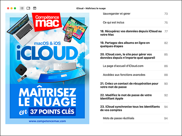 Ce nouveau guide édité par Compétence Mac vous propose d’aborder le sujet d’iCloud pour apprendre à configurer le nuage sur tous vos appareils, à synchroniser vos documents en ligne depuis le Mac, à mettre en sécurité les données de votre iPhone et/ou iPad, à protéger votre identifiant Apple, à débuter un projet sur un appareil et à le poursuivre sur un autre, à optimiser le stockage de vos photos sur le cloud, et bien plus encore. Le thème d’iCloud est vaste et parfois difficile à appréhender. Nous avons traité différents angles et fonctionnalités du nuage made in Apple. Comme à notre habitude, nous avons tenté de simplifier au maximum les sujets de ce guide. Bonne découverte !