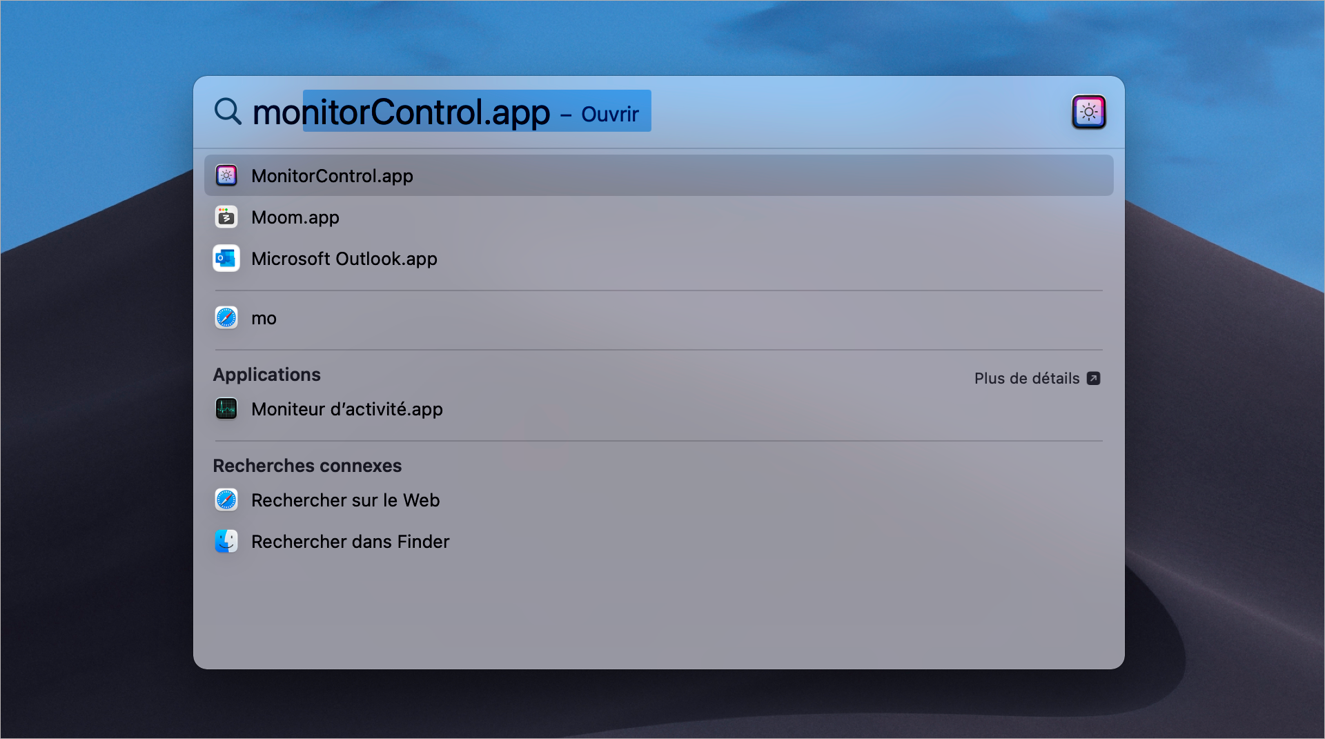 Pour cela, vous allez utiliser la recherche Spotlight. Par défaut, son raccourci clavier est [cmd]+[espace]. Quand le champ de recherche apparait, saisissez les premières lettres du nom de l’application.
